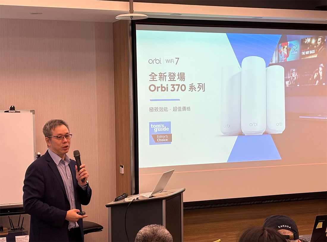 NETGEAR 台灣總代理-瀚錸科技總經理許勝雄在發表會上指出,NETGEAR Orbi 370 是NETGEAR為中小型家庭/企業特別打造的全新機種,採用 Wi-Fi 7 架構與 2.5G 網路介面,能完美支援目前台灣最普遍的 1G 到 2.5G 寬頻服務。這款產品在美國上市後反應熱烈,台灣市場也預期將掀起同樣的升級風潮。