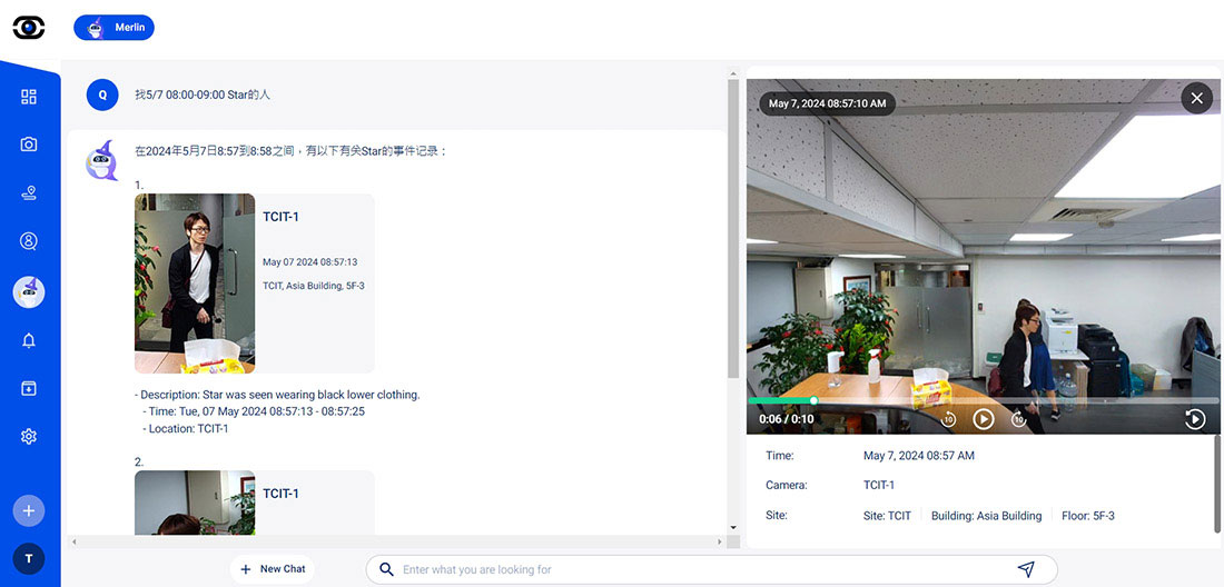 在跨站點的追蹤任務中,警方往往需花費數小時甚至數天翻找海量影像檔案。TCIT AI Box獨家結合ChatGPT技術,推出自然語言事件搜尋功能。