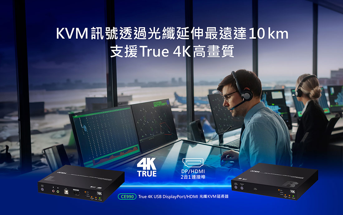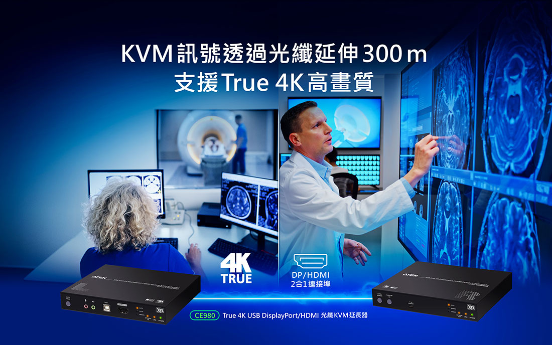 宏正自動科技資深副總經理林勇達表示:「這是我們第一款支援True 4K DisplayPort與HDMI介面的光纖KVM延長器,專為未來應用場景設計:結合無損的4K影像品質與長距離、高速控制效能。無論是在智慧製造優化操作流程、交通控制中心保持即時監控,或是在醫療診斷時進行精準的影像分析,CE980與CE990都能提供穩定、安全且零干擾的傳輸效能。」 |