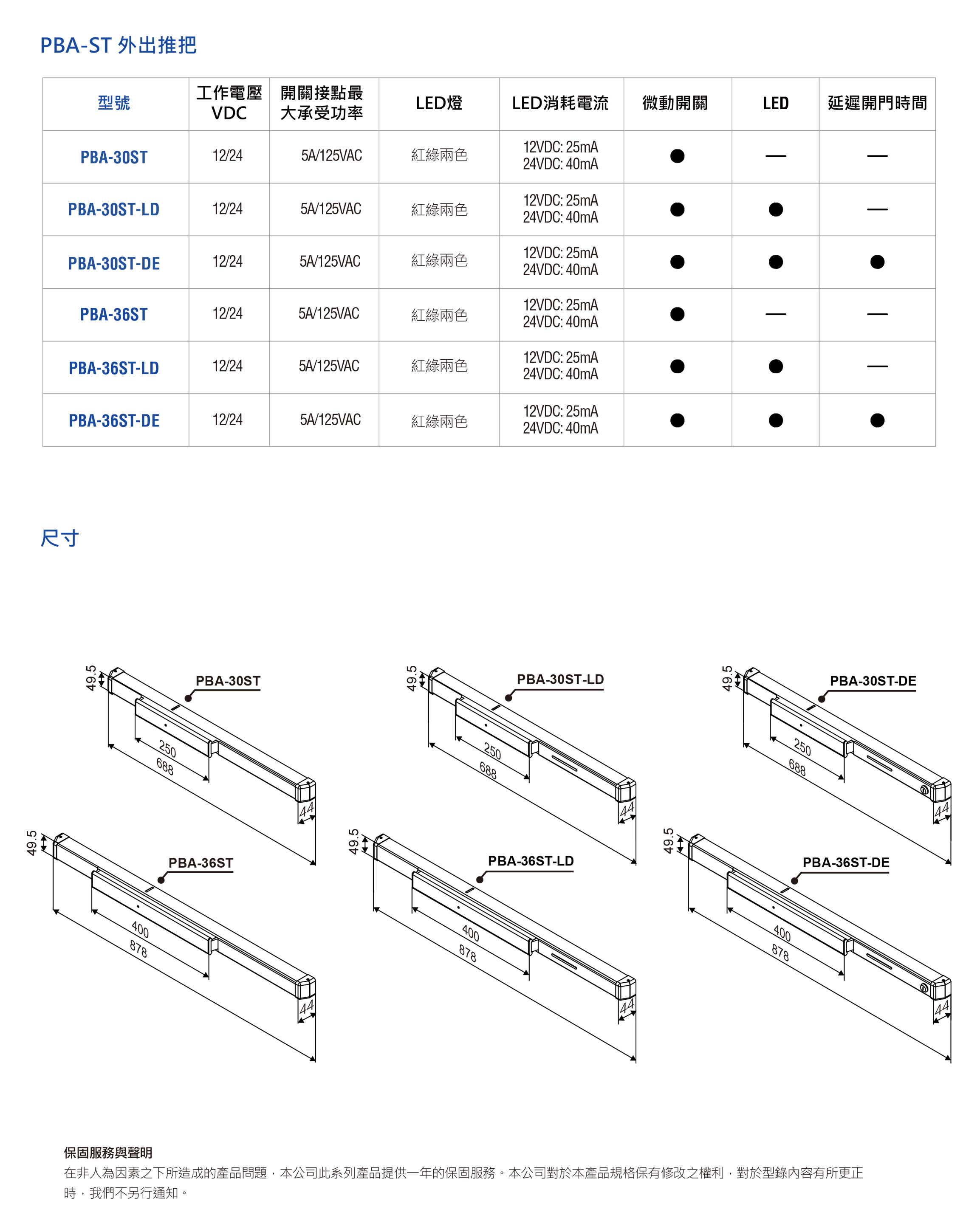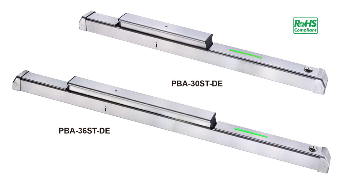 | PBA-30ST & PBA-36ST 外出推把是針對安全門(或其他大型向外開式門)連動電控鎖而設計,當下壓推把,切換內部微動開關即可切斷斷電開門型電鎖的電源,開門外出。 |