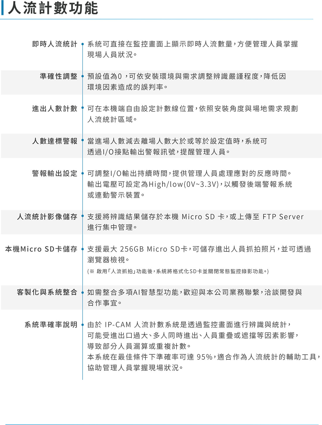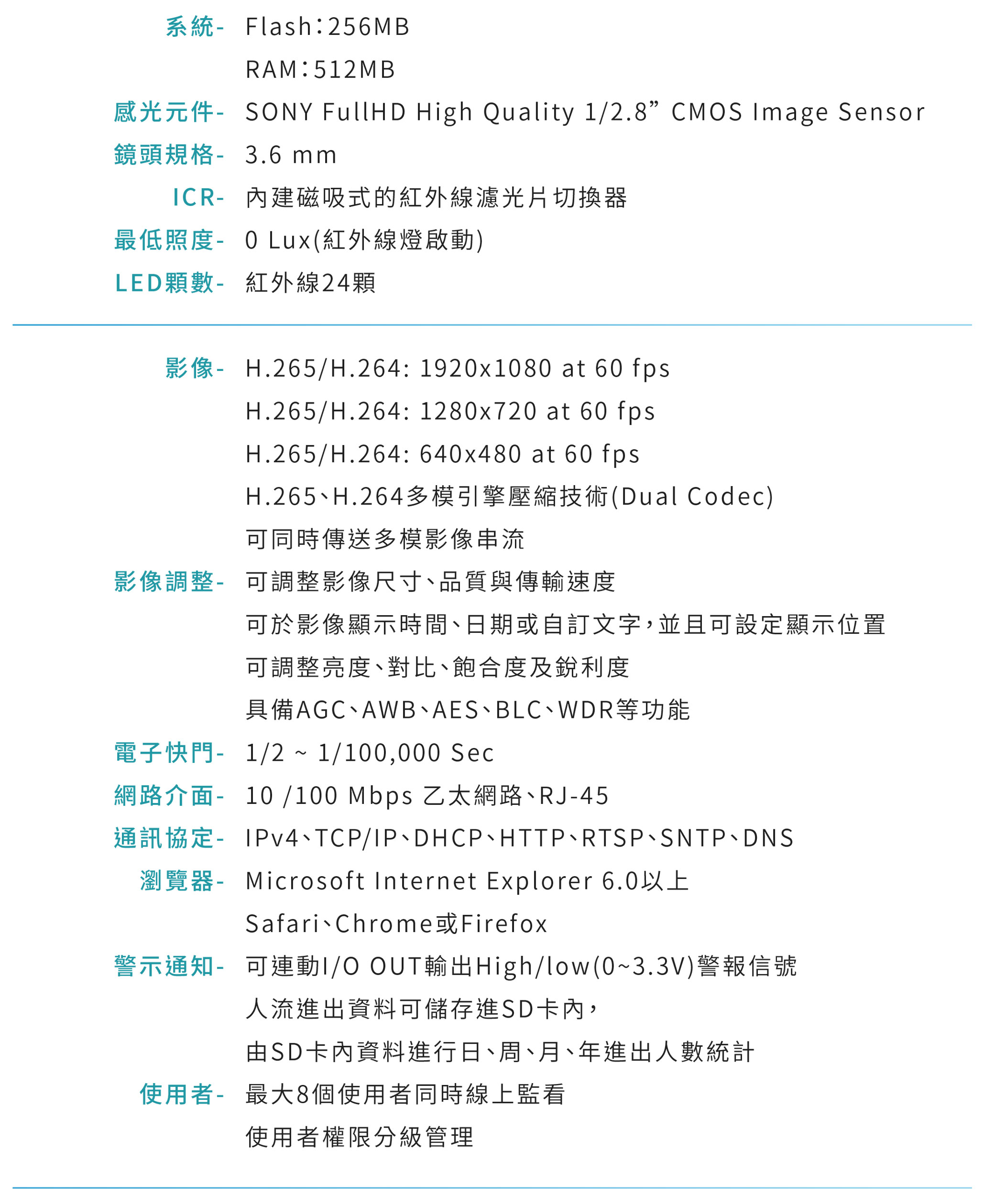 • 支援ONVIF國際標準,相容性及整合性最佳,可附SDK供後台系統商整合