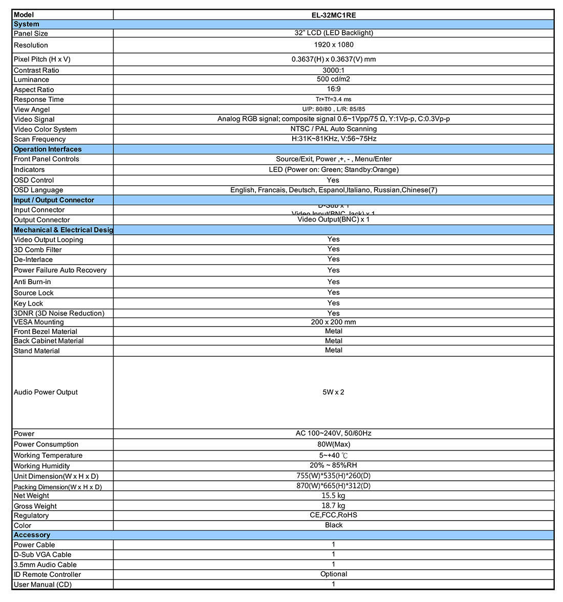 32" 工業級監控專業 LCD Monitor - EL-32MC1RE