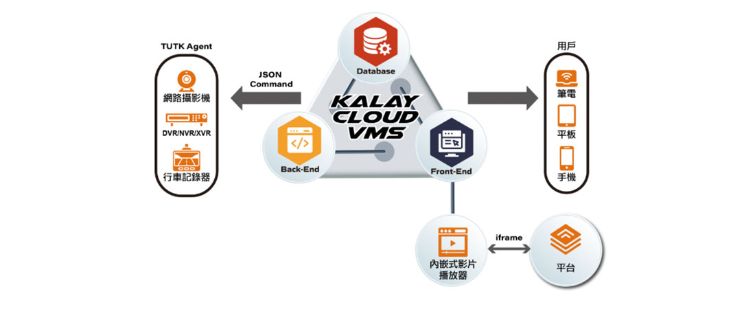 系統功能 : 雲端影像管理系統(Kalay Cloud VMS)實現跨據點雲端即時監視影像管理。